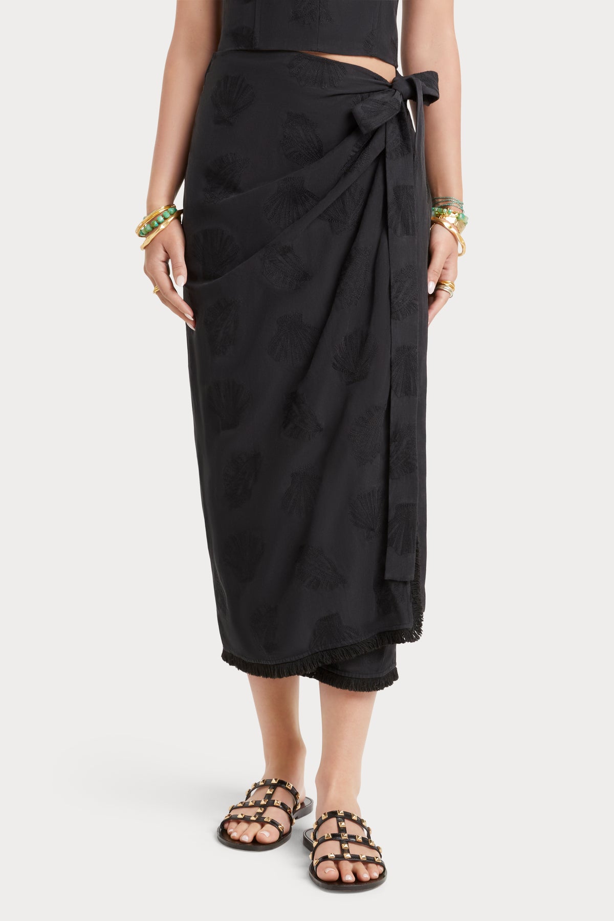 – Wrap skirt detail with ties